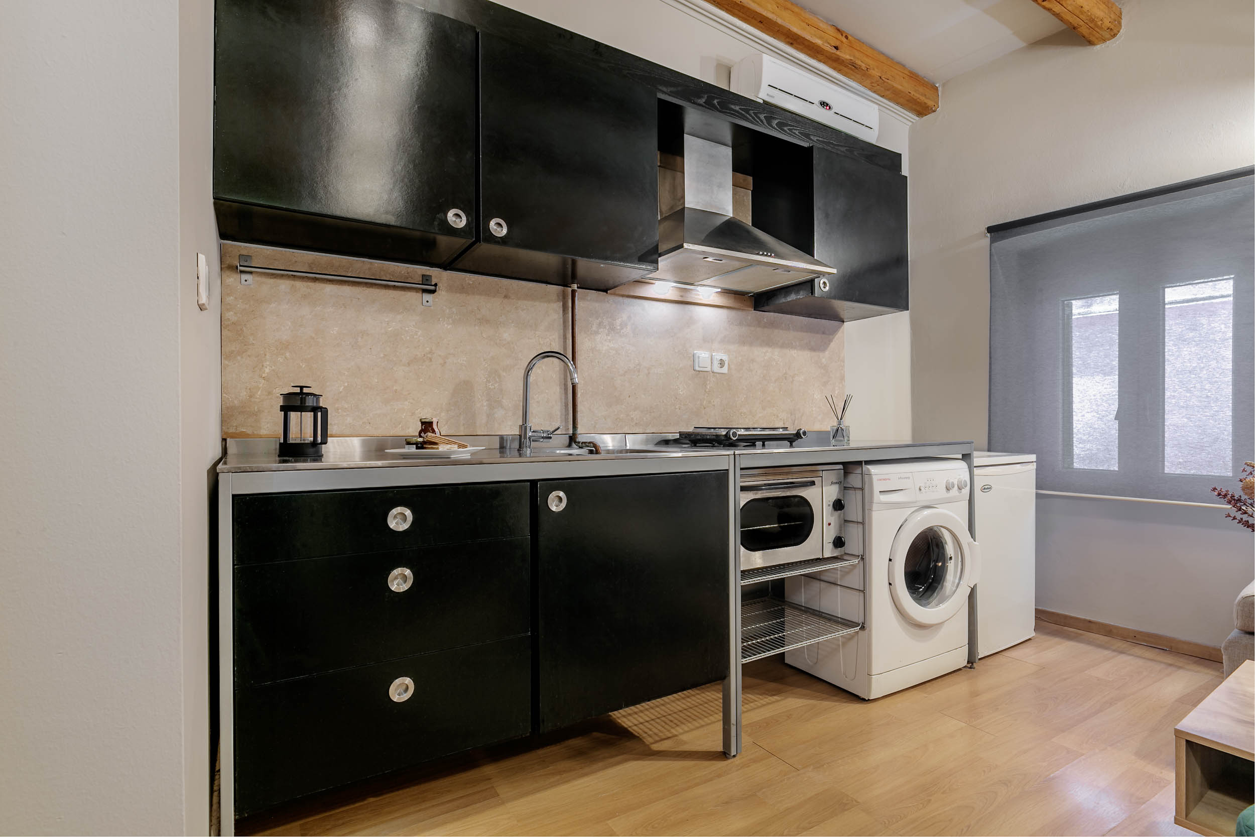 - Kitchen: Small but fully equipped with stove, microwave, kettle, coffee maker, and utensils for preparing light meals.